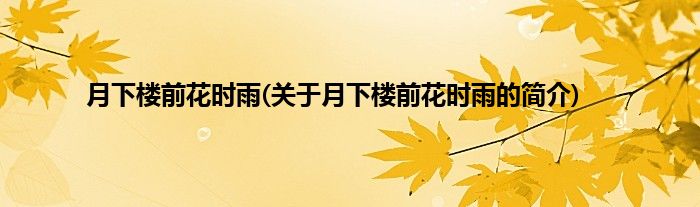 本文关于月下楼前花时雨的简介就讲解完毕,希望对大家有所帮助。