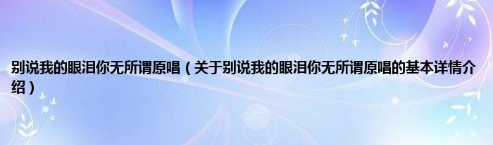 本文关于别说我的眼泪你无所谓原唱的基本详情介绍就讲解完毕,希望对大家有所帮助。