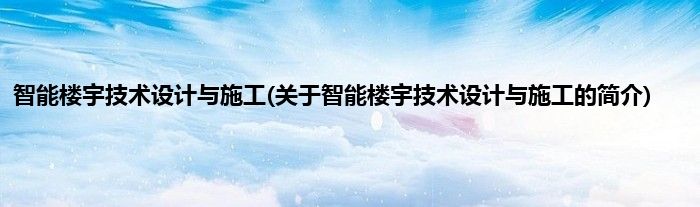 本文关于智能楼宇技术设计与施工的简介就讲解完毕,希望对大家有所帮助。