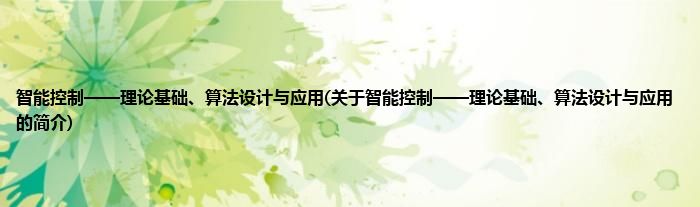 本文关于智能控制——理论基础、算法设计与应用的简介就讲解完毕,希望对大家有所帮助。