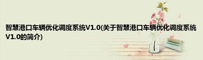 本文关于智慧港口车辆优化调度系统V1.0的简介就讲解完毕,希望对大家有所帮助。