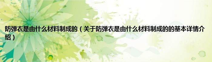 本文关于防弹衣是由什么材料制成的的基本详情介绍就讲解完毕,希望对大家有所帮助。