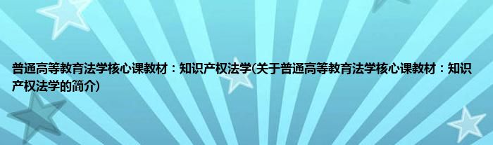 本文关于普通高等教育法学核心课教材:知识产权法学的简介就讲解完毕,希望对大家有所帮助。