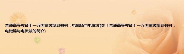 1、 《普通高等教育十一五国家级规划教材电磁场与电磁波》是2007年高等教育出版社出版的图书。