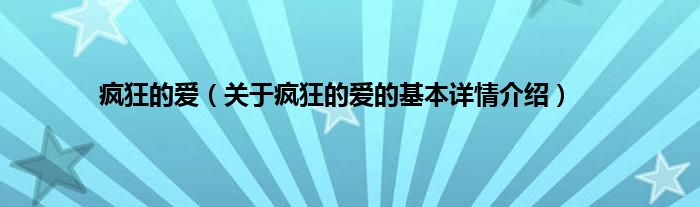 本文关于疯狂的爱的基本详情介绍就讲解完毕,希望对大家有所帮助。