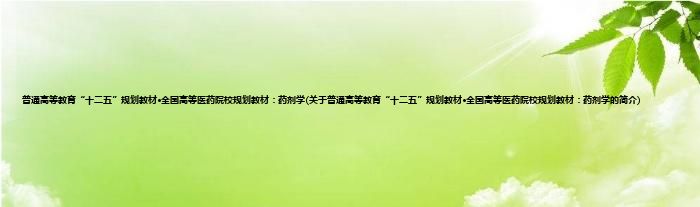 1、 《普通高等教育"十二五"规划教材·全国高等医药院校规划教材:药剂学(供药学及相关专业用)》其目的在于通过本课程学习,能够掌握药剂学的基本概念;掌握各类药物剂型和制剂的基本理论、基本性质和特点;熟悉各类剂型的处方组成和体内外质量评价指标;掌握主要制剂的制备工艺。