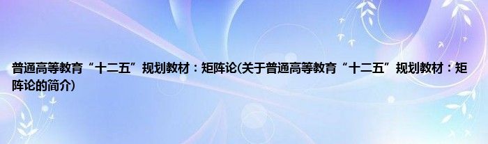 本文关于普通高等教育“十二五”规划教材:矩阵论的简介就讲解完毕,希望对大家有所帮助。