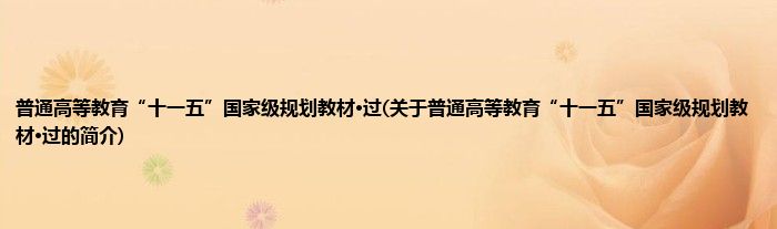 本文关于普通高等教育“十一五”国家级规划教材·过的简介就讲解完毕,希望对大家有所帮助。
