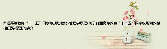 大家好,普通高等教育“十一五”国家级规划教材·管理学原理,关于普通高等教育“十一五”国家级规划教材·管理学原理的简介很多人还不知道,现在让我们一起来看看吧!