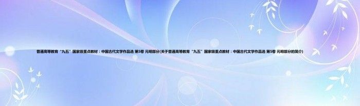 1、 《普通高等教育“九五”国家级重点教材:中国古代文学作品选(第5卷)(元明部分)》是2003年高等教育出版社出版的图书。