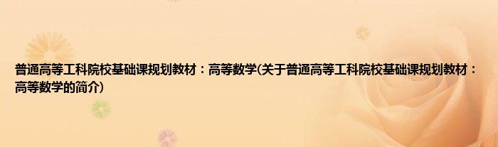 大家好,普通高等工科院校基础课规划教材:高等数学,关于普通高等工科院校基础课规划教材:高等数学的简介很多人还不知道,现在让我们一起来看看吧!