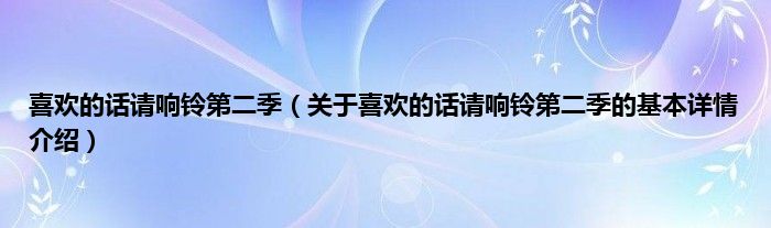 喜欢的话请响铃第二季(关于喜欢的话请响铃第二季的基本详情介绍)