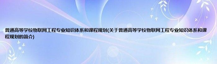 大家好,普通高等学校物联网工程专业知识体系和课程规划,关于普通高等学校物联网工程专业知识体系和课程规划的简介很多人还不知道,现在让我们一起来看看吧!
