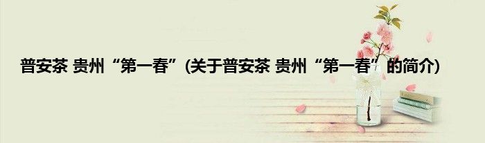 大家好,普安茶,贵州“第一春”,关于普安茶,贵州“第一春”的简介很多人还不知道,现在让我们一起来看看吧!