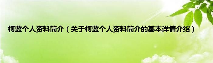 本文关于柯蓝个人资料简介的基本详情介绍就讲解完毕,希望对大家有所帮助。