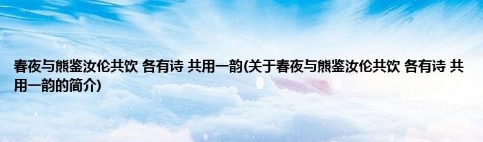 大家好,春夜与熊鉴汝伦共饮,各有诗,共用一韵,关于春夜与熊鉴汝伦共饮,各有诗,共用一韵的简介很多人还不知道,现在让我们一起来看看吧!