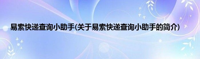 大家好,易索快递查询小助手,关于易索快递查询小助手的简介很多人还不知道,现在让我们一起来看看吧!