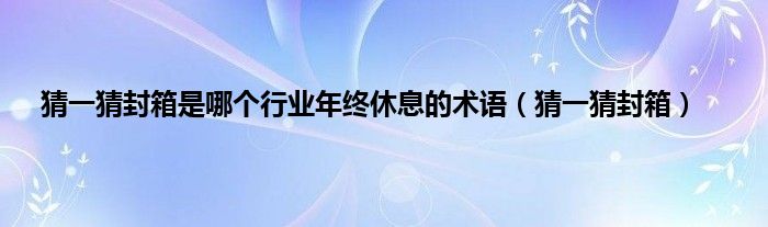 大家好,精选小编来为大家解答以上问题。猜一猜封箱是哪个行业年终休息的术语,猜一猜封箱很多人还不知道,现在让我们一起来看看吧!