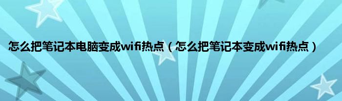怎么把笔记本电脑变成wifi热点(怎么把笔记本变成wifi热点)