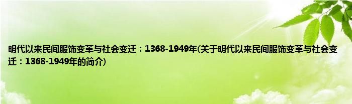 大家好,明代以来民间服饰变革与社会变迁:1368-1949年,关于明代以来民间服饰变革与社会变迁:1368-1949年的简介很多人还不知道,现在让我们一起来看看吧!