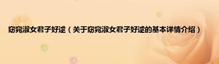 窈窕淑女君子好逑(关于窈窕淑女君子好逑的基本详情介绍)