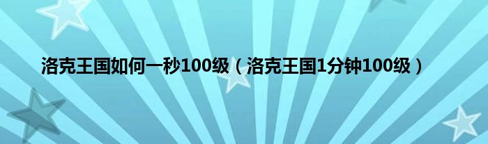 洛克王国如何一秒100级(洛克王国1分钟100级)