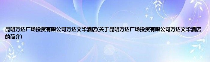 本文关于昆明万达广场投资有限公司万达文华酒店的简介就讲解完毕,希望对大家有所帮助。