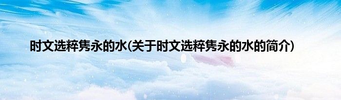 本文关于时文选粹隽永的水的简介就讲解完毕,希望对大家有所帮助。