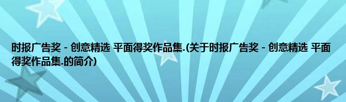 时报广告奖-创意精选平面得奖作品集.(关于时报广告奖-创意精选平面得奖作品集.的...