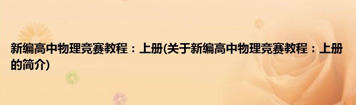 大家好,新编高中物理竞赛教程:上册,关于新编高中物理竞赛教程:上册的简介很多人还不知道,现在让我们一起来看看吧!