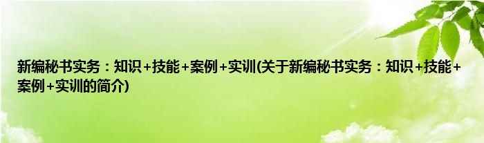 本文关于新编秘书实务:知识+技能+案例+实训的简介就讲解完毕,希望对大家有所帮助。