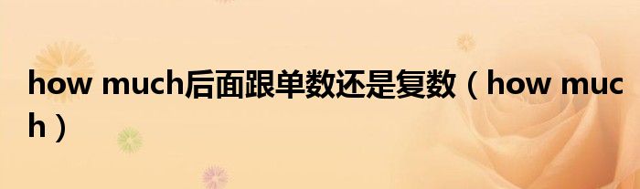 大家好,精选小编来为大家解答以上问题。how much后面跟单数还是复数,how much很多人还不知道,现在让我们一起来看看吧!