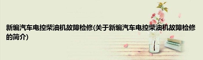 本文关于新编汽车电控柴油机故障检修的简介就讲解完毕,希望对大家有所帮助。