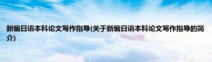 大家好,新编日语本科论文写作指导,关于新编日语本科论文写作指导的简介很多人还不知道,现在让我们一起来看看吧!