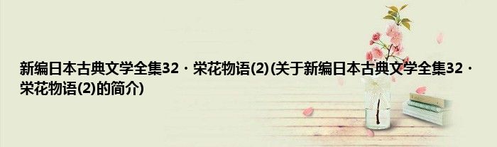 本文关于新编日本古典文学全集32・栄花物语(2)的简介就讲解完毕,希望对大家有所帮助。