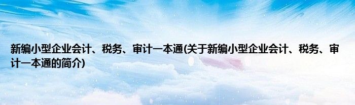 大家好,新编小型企业会计、税务、审计一本通,关于新编小型企业会计、税务、审计一本通的简介很多人还不知道,现在让我们一起来看看吧!
