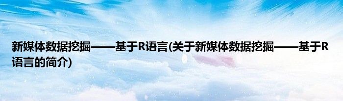 新媒体数据挖掘——基于R语言(关于新媒体数据挖掘——基于R语言的简介)