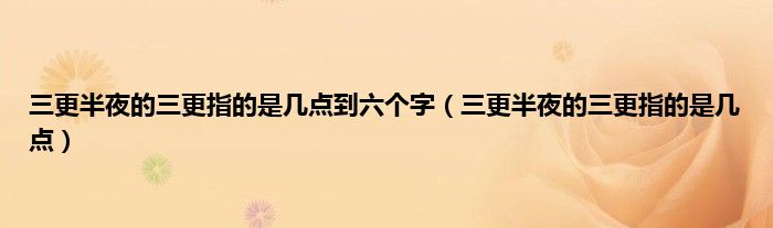 一、 三更半夜的三更指的是几点