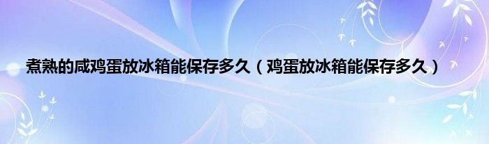 大家好,小科来为大家解答以上问题。煮熟的咸鸡蛋放冰箱能保存多久,鸡蛋放冰箱能保存多久很多人还不知道,现在让我们一起来看看吧!