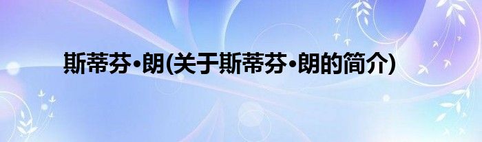 斯蒂芬·朗(关于斯蒂芬·朗的简介)
