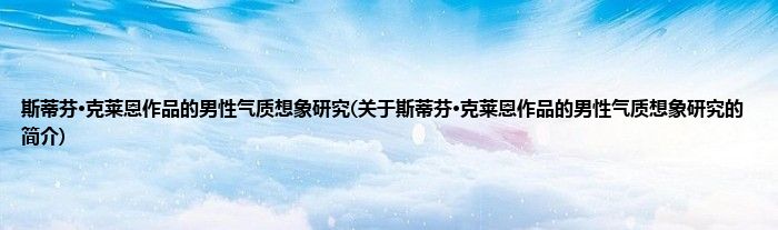 斯蒂芬·克莱恩作品的男性气质想象研究(关于斯蒂芬·克莱恩作品的男性气质想象研究的简介)