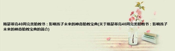 本文关于斯瑟蒂克40周完美胎教书:影响孩子未来的神奇胎教宝典的简介就讲解完毕,希望对大家有所帮助。