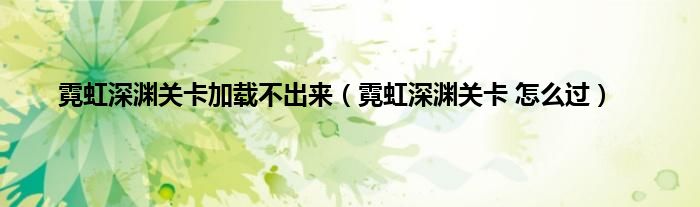霓虹深渊关卡加载不出来(霓虹深渊关卡 怎么过)