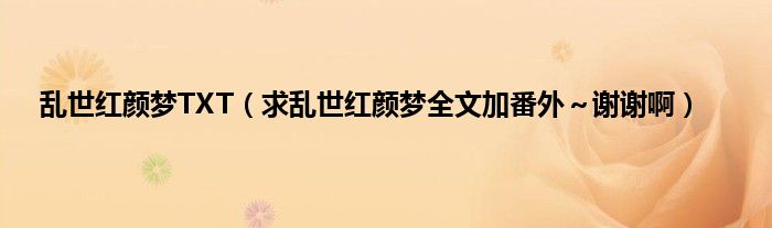 大家好,小常来为大家解答以上问题。乱世红颜梦TXT,求乱世红颜梦全文加番外~谢谢啊很多人还不知道,现在让我们一起来看看吧!