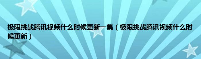 极限挑战腾讯视频什么时候更新一集(极限挑战腾讯视频什么时候更新)