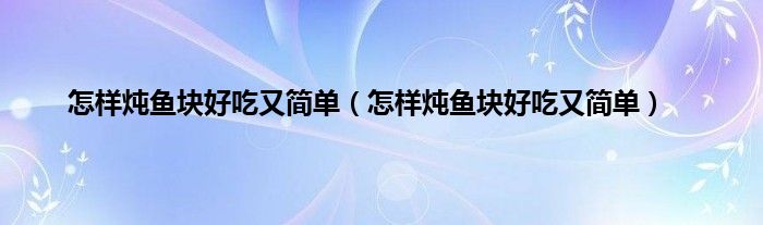 怎样炖鱼块好吃又简单(怎样炖鱼块好吃又简单)