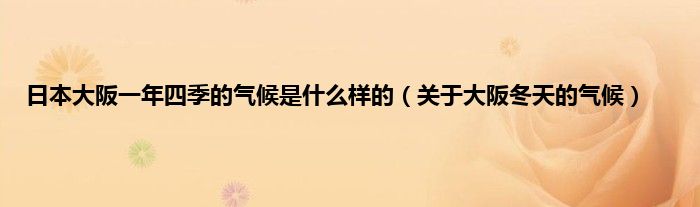 大家好,小常来为大家解答以上问题。日本大阪一年四季的气候是什么样的,关于大阪冬天的气候很多人还不知道,现在让我们一起来看看吧!