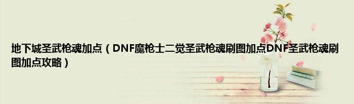 大家好,小常来为大家解答以上问题。地下城圣武枪魂加点,DNF魔枪士二觉圣武枪魂刷图加点DNF圣武枪魂刷图加点攻略很多人还不知道,现在让我们一起来看看吧!