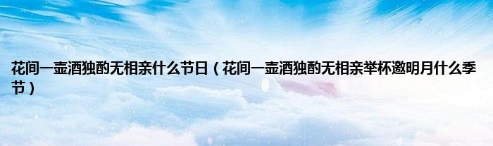 大家好,小常来为大家解答以上问题。花间一壶酒独酌无相亲什么节日,花间一壶酒独酌无相亲举杯邀明月什么季节很多人还不知道,现在让我们一起来看看吧!