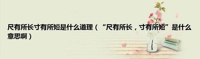 大家好,小常来为大家解答以上问题。尺有所长寸有所短是什么道理,“尺有所长,寸有所短”是什么意思啊很多人还不知道,现在让我们一起来看看吧!